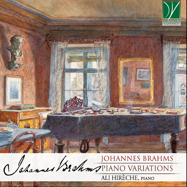 La cover del CD della Da Vinci Classics, registrato da Ali Hirèche e dedicato al mondo delle Variazioni brahmsiane.