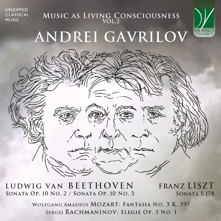 Così, dopo che lo scorso anno ha finalmente rotto il ghiaccio proponendo pagine di Schumann e di Musorgskij, del primo Papillons op. 2 e gli Études Symphoniques op. 13 e del secondo i Pictures at an Exhibition, ora ha ampliato ulteriormente la forbice, presentando in un secondo disco la Fantasia n. 3 K.397 di Mozart, le Sonate n. 2 & n. 3 op. 10 di Beethoven, la Sonata in si minore di Liszt e l’Elegia op. 3 n. 1 di Rachmaninov. Entrambe le registrazioni hanno un denominatore comune nel sottotitolo e nell’immagine della cover: la prima recita testualmente Music as living Consciousness, mentre la seconda vede il volto dello stesso Gavrilov, disegnato da Serge Serov, posto al centro tra quelli degli autori affrontati; nel primo caso Schumann e Musorgskij, nel secondo Beethoven e Liszt. Ma ciò che colpisce è come il tratto del disegno, pur rispettando i lineamenti dell’interprete e dei musicisti, tenda a fonderli, a configurarli in un’immagine che non permette più di distinguerli chiaramente, come a voler significare, ancor più con il disegno che con il sottotitolo, che tra chi esegue e chi compone, tra chi decodifica il segno e chi lo scrive, non vi è più differenza, con il risultato, e ciò viene acclarato maggiormente se si vanno a leggere le dichiarazioni di intento dello stesso Gavrilov, che il segno in quanto tale tende ad essere annullato, in quanto rappresenta la traccia, la linea di demarcazione tra compositore e interprete (e in ciò viene anche coinvolto, in chiave più “passiva”, lo stesso ascoltatore), il che inevitabilmente pone tale relazione su un piano in cui vi è un soggetto e, di conseguenza, un oggetto, un indicatore e, parallelamente, un indicato. È lo stesso pianista russo a spiegarlo, con le sue parole, nel testo che è stato incluso nelle note di accompagnamento al primo disco, quello dedicato a Schumann e a Musorgskij: «A un certo punto, verso la metà degli anni Novanta, giunsi a realizzare che quello che consideravo come la “comprensione” del linguaggio musicale era in realtà solo un livello avanzato di qualificata e rigida dimestichezza con delle regole e delle norme, totalmente priva di un dialogo intimo fra il musicista e l’ascoltatore della musica. Nella mia vita musicale non vi era alcuna trasmissione di pensieri consci o di elementi di una persona vivente. Questa presa di coscienza germogliò di fronte a domande fondamentali che mi sentivo obbligato a porre, ma che fino ad allora erano mancate nel mondo delle “arti performative” e dell’arte di suonare il pianoforte. Domande come: Cosa si trova oltre i confini delle “tradizioni”, degli “stili”, delle “scuole” e dell’analisi teoretica? Cos’è l’oggetto, l’id della musica, e soprattutto qual è il suo ruolo (e il mio, peraltro) nello schema dell’intuizione del suono?».