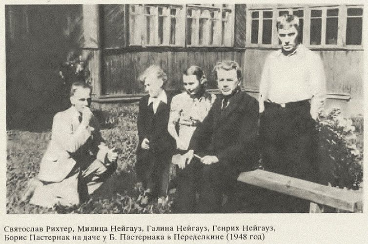 Da sinistra, Sviatoslav Richter, Miliza Neuhaus e Galina Neuhaus, rispettivamente moglie e figlia di Neuhaus, il grande didatta e lo scrittore Boris Pasternak nella dacia di quest'ultimo a Pederelkino, nell'estate del 1948.