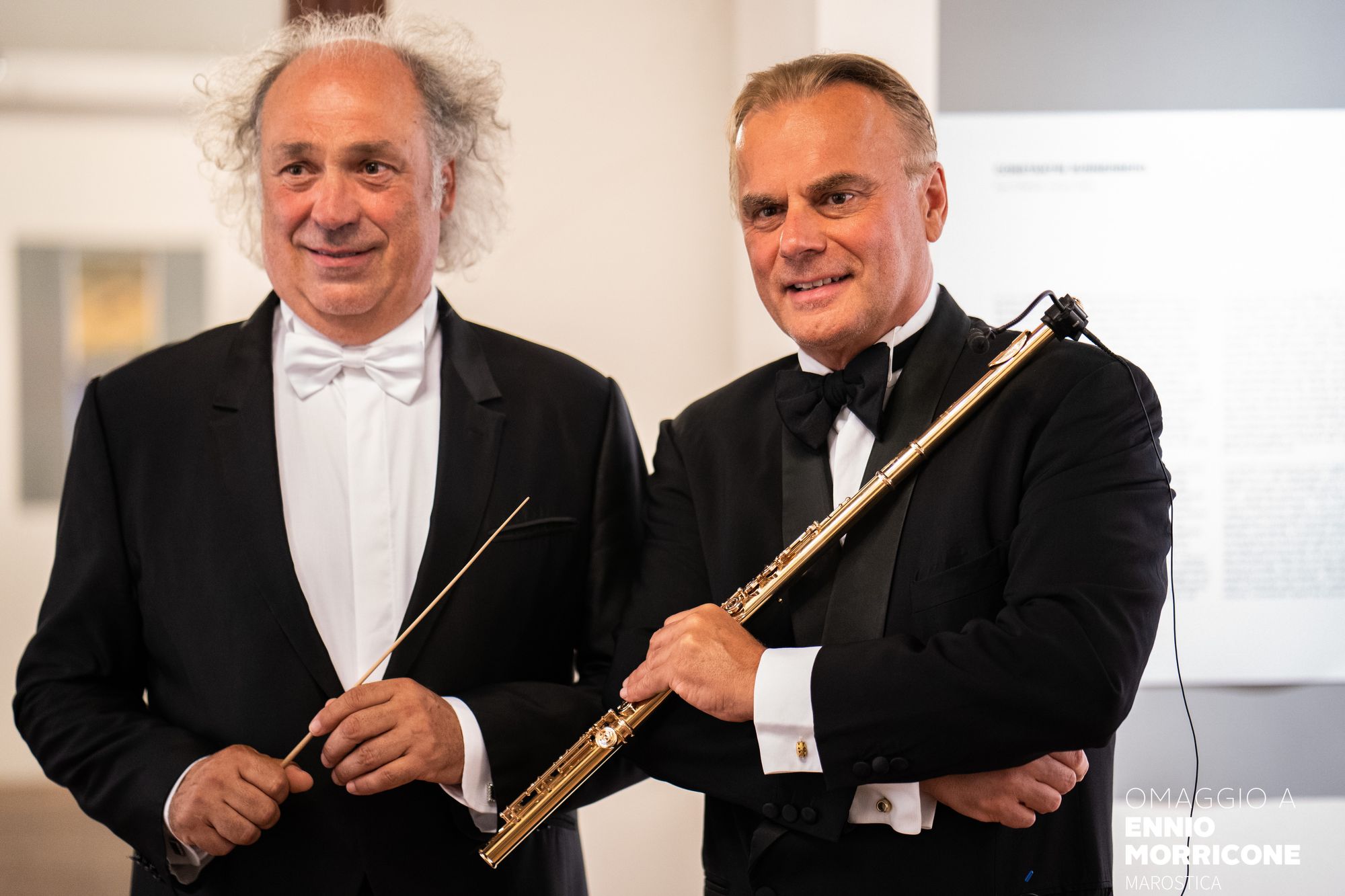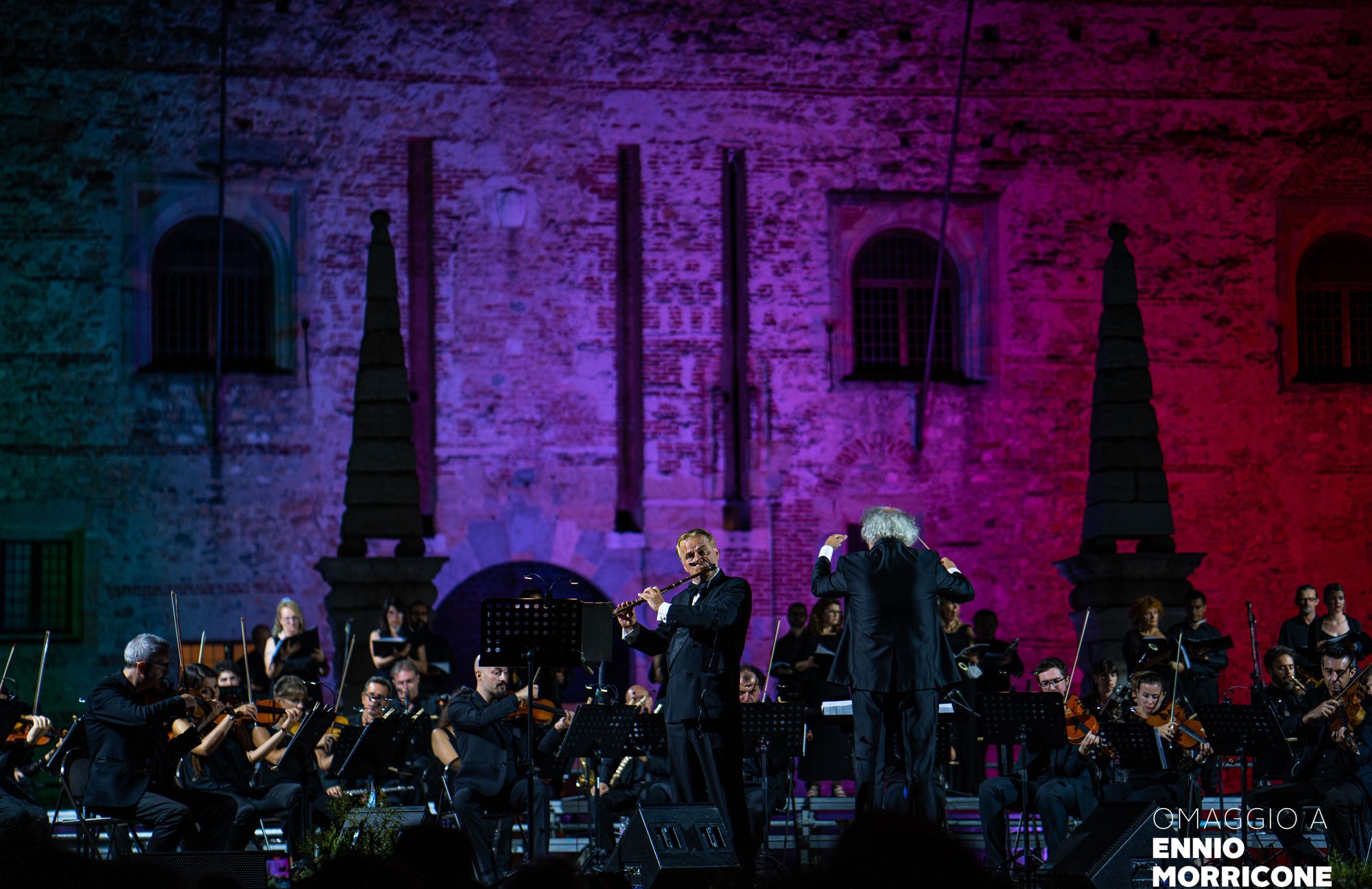 Conosco Andrea Griminelli da diversi anni. Ci siamo incontrati in diverse situazioni come ad esempio al Concerto di Natale in Vaticano. Tra noi c’è sempre stata molta intesa e reciproca stima e, in diverse occasioni, abbiamo espresso il desiderio di trovare l’occasione per lavorare insieme. Entrambi estimatori della musica di Ennio Morricone, e grazie alla collaborazione con la Due Punti Eventi, è nata così una versione del progetto musicale Omaggio a Ennio Morricone con la presenza di Andrea come ospite solista. L’evento era stato inserito nel calendario del Marostica Summer Festival già ai primi di gennaio 2020. Il concerto programmato nel mese di luglio 2020 è rimasto incerto fino all’ultimo momento per l’emergenza causata dal COVID-19. Nel frattempo, il 6 luglio 2020 Ennio Morricone ci ha lasciato e il primo concerto a lui dedicato insieme con Griminelli, che si è svolto a Marostica lo scorso 23 luglio 2020, si è caricato di ulteriori significati. È stato emozionante e il pubblico continua ad apprezzare questo tipo di concerti. Oggi Morricone non c’è più ma ci sarà per sempre la sua musica. Andre Griminelli aveva fra l’altro con Morricone un legame molto forte tanto che per lui lo stesso compositore romano ha scritto opere per flauto e orchestra. È quindi un onore per me dirigere Andrea Griminelli insieme con l’Orchestra. Le sue interpretazioni e la sua tecnica sorprendente sono conosciute e amate in tutto il mondo. Tra noi, nella vita di tutti i giorni c’è molta empatia, ma la sintonia che si crea in palcoscenico è unica.