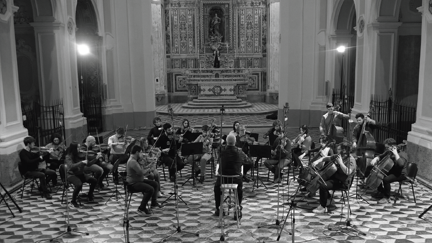 Un principio unitario, questo, che Ciro Ferrigno organizza sonoramente, come appunto viene offerto dalla prima composizione presente nella playlist, dal titolo Quattro cornici sinfoniche per orchestra d’archi, anche mediante delle immagini e soluzioni squisitamente metamusicali, che vengono armonicamente e melodicamente incorporate nella struttura compositiva. Questa composizione, suddivisa in quattro segmenti, Monuments, Decumani, Lontano e Donn’Anna, prende quindi a prestito immagini, sensazioni, connotazioni antropologiche, aspetti architettonici della realtà storica napoletana, che qui assurge il ruolo di insostituibile punto di riferimento della cultura musicale del vecchio continente, e li pianifica in un “artificio” che non intende, però, sostituirsi al naturale, quanto perpetuarlo, estenderlo, ampliarlo in una dimensione nella quale la tradizione diviene atto in perenne mutamento, annullando di fatto il concetto di tradimento, di un figlio che uccide il padre che lo ha generato.