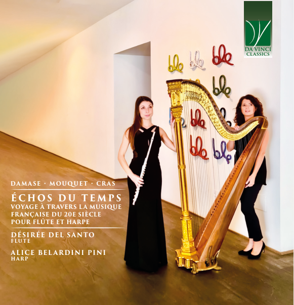 Il problema, però, è dato dal fatto che, al di là di quanto crearono i soliti numi tutelari, ossia Saint-Saëns (Fantaisie per flauto e arpa, op. 124), Fauré (Impromptu per arpa, op. 86 e Une châtelaine en sa tour per arpa, op. 110), Debussy (Sonata n. 2 per flauto, viola e arpa, le Chansons de Bilitis per due arpe, due flauti, celesta e voce recitante e le Danses per arpa cromatica), Ravel (Introduction et allegro per arpa, flauto, clarinetto e quartetto per archi, Vocalise-Étude en forme de Habanera per flauto e arpa), il resto della produzione d’impronta francese per arpa viene considerato dalla stragrande maggioranza degli ascoltatori territorio di emeriti carneadi. Il che rappresenta un grosso errore, come ben dimostra un recentissimo disco, dal titolo Echos du temps. Voyage à travers la musique française du 20e siècle pour flûte et arpe e pubblicato dalla Da Vinci Classics, che vede il duo cameristico formato dalla flautista Désirée Del Santo e dall’arpista Alice Belardini Pini eseguire composizioni per tale organico di autori quali Jean-Michel Damase, Jules Mouquet e Jean Cras, nomi che non vengono solitamente masticati e digeriti con dimestichezza, se non da parte degli aficionados.