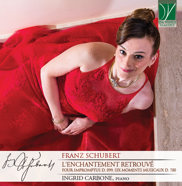 Questa “instabilità”, questa continua mutazione nella volontà compositiva, tale da portarci a considerare l’incompiutezza schubertiana come una rappresentazione di “altra” compiutezza, non dev’essere mai disgiunta anche quando si ascoltano quelle opere apparentemente “minimali” che appartengono al repertorio pianistico, come nel caso dei Moments musicaux (op. 94) e degli Impromptus (op. 90 e op. 142), i cui titoli furono dati dall’editore e non dal loro autore (ad essere precisi Maximilian Joseph Leidesdorf chiamò i primi, con un francese a dir poco approssimativo, “Momens musicals”). Brani, più precisamente l’op. 90 & l’op. 94, che sono stati recentemente registrati dalla pianista calabrese Ingrid Carbone per l’etichetta Da Vinci Classics in un CD dal titolo L’enchantement retrouvé e la cui lettura porta a fare alcune considerazioni, anche in ambito generale.
