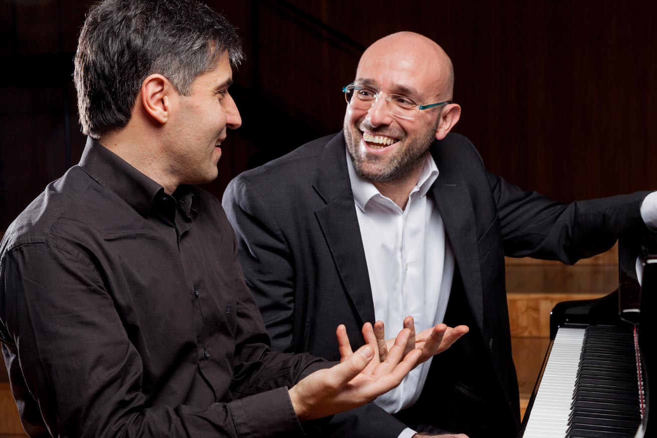 Direi che le doti principali, come in tutta la musica da camera, sono la capacità di ascolto, la disponibilità, il desiderio di confrontarsi con l’altro o l’altra per costruire un’interpretazione condivisa. Il duo pianistico a quattro mani, oltre a ciò, comporta una serie di difficoltà specifiche (l’insieme, l’attacco del tasto e l’articolazione, la pedalizzazione, la gestione di uno spazio ridotto sulla tastiera) che richiedono un lavoro d’insieme lungo e paziente. Il mio consiglio è innanzitutto di scegliersi un collega o una collega con cui si va molto d’accordo. La sintonia, l’amicizia e l’allegria credo siano un punto di partenza irrinunciabile per affrontare il lungo e appassionante percorso che porta due persone che semplicemente “suonano insieme” a diventare due persone che “fanno musica insieme”. L’altro consiglio che mi sento di dare è di non sottovalutare le difficoltà e le grandi possibilità che questa formazione offre. Alcuni lo considerano un repertorio minore e meno impegnativo: un errore esiziale che non può che condurre a risultati mediocri. Il repertorio per pianoforte a quattro mani, originale o trascritto, è sterminato, presenta tantissimi capolavori pieni di ostacoli e costituisce una vera sfida per chi voglia affrontarlo in modo serio e professionale. Dopo quindici anni di lavoro in duo io e Marco ci conosciamo talmente bene che finiamo spesso per anticipare le intenzioni uno dell’altro. Capita anche in concerto, magari in un brano che suoniamo da tanto tempo: un’idea nuova nasce lì sul momento e l’altro la asseconda immediatamente senza scompensi, problemi di equilibrio o d’insieme. È un modo di fare musica davvero molto gratificante.
