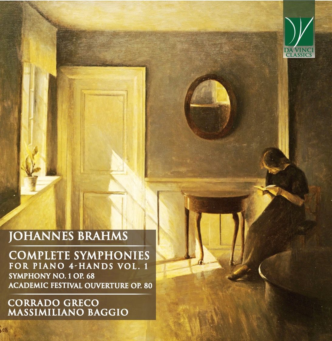 La cover del CD Da Vinci Classics del duo Greco & Baggio dedicato alla Prima sinfonia di Brahms per pianoforte a quattro mani.
