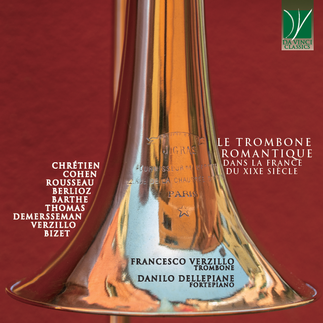 Il Paese transalpino entra così prepotentemente in campo proprio nel nostro disco in questione, dal titolo Le trombone romantique dans la France du XIXe siècle, pubblicato da Da Vinci Classics, e che vede il trombonista Francesco Verzillo, accompagnato dal pianista Danilo Dellepiane, presentare nove brani del repertorio cameristico per questo specifico duo nell’ambito della musica francese dell’Ottocento, unitamente al Poème, composto dallo stesso Verzillo. Gli autori e i brani francesi presi in esame sono per la precisione, Hedwige Chrétien con il Grand Solo: andante et Allegro pour trombone et piano, Jules Cohen con l’Andantino, Samuel Rousseau con il Pièce concertante pour trombone avec accompagnement de piano, Hector Berlioz con l’Oraison Funèbre: solo from Grande Symphonie Funèbre et Triomphale op. 15, Adrien Barthe con il Solo de concours, Ambroise Thomas con Solo from Hamlet, Jules Demersseman con l’Introduction et polonaise Op. 30 e Georges Bizet con Habanera from Carmen e la Danse des gitans from Carmen. Così abbiamo compositori decisamente conosciuti come Berlioz, Thomas e Bizet, ad altri che invece appartengono alla sfera di competenza degli addetti ai lavori.