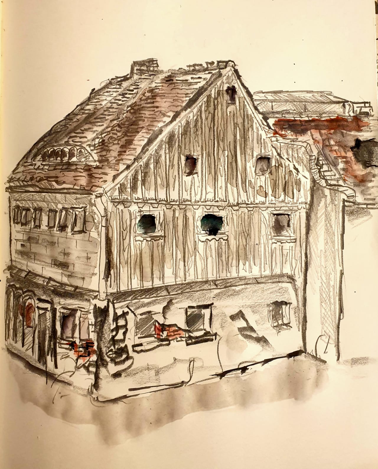 E così sono i pezzi, i falsamente brevi segmenti che compongono questo Trittico, in cui i termini architettonici della musica rinascimentale di Heinrich Isaac vengono trattati sulla base di una novella modalità espressiva (la lezione di Ligeti sull’uso della voce è sempre in agguato) che trova il suo pieno compimento nell’ultimo brano, Resurrezione, che viene sperimentato, vissuto, reso spazialmente dal coro attraverso temi in cui la portata dissonantica porta voci isolate a sganciarsi dalla compattezza corale per urlare la parola “resistenza”: la speranza in una resurrezione diviene quindi possibilità di riscatto nell’umano esistere, che è così sancito mediante l’azione del r-esistere, dato da suoni percussivi, manifestati dagli stessi coristi, quasi fossero fratture dirompenti che intendono rompere la fallace compiacenza di uno status quo narcotizzante (non si dimentichi un altro aspetto caro a Gerung, quello di portare a compimento un’attuazione scenica, “teatrale”, presente perfino nelle sue composizioni per chitarra e liuto, con l’interprete che assume un ruolo attoriale in cui il gesto e il rumore che ne derivano hanno il compito di generare un afflato geometricamente tridimensionale: a livello pittorico si guardi come tale principio volumetrico venga esaltato nelle due opere accennate sopra, così come in un altro tema ricorrente nella pittura dell’artista tedesco, quello delle case, degli edifici, resi sempre con un respiro in cui le linee e i colori sembrano il risultato di un’inspirazione e di un’espirazione).