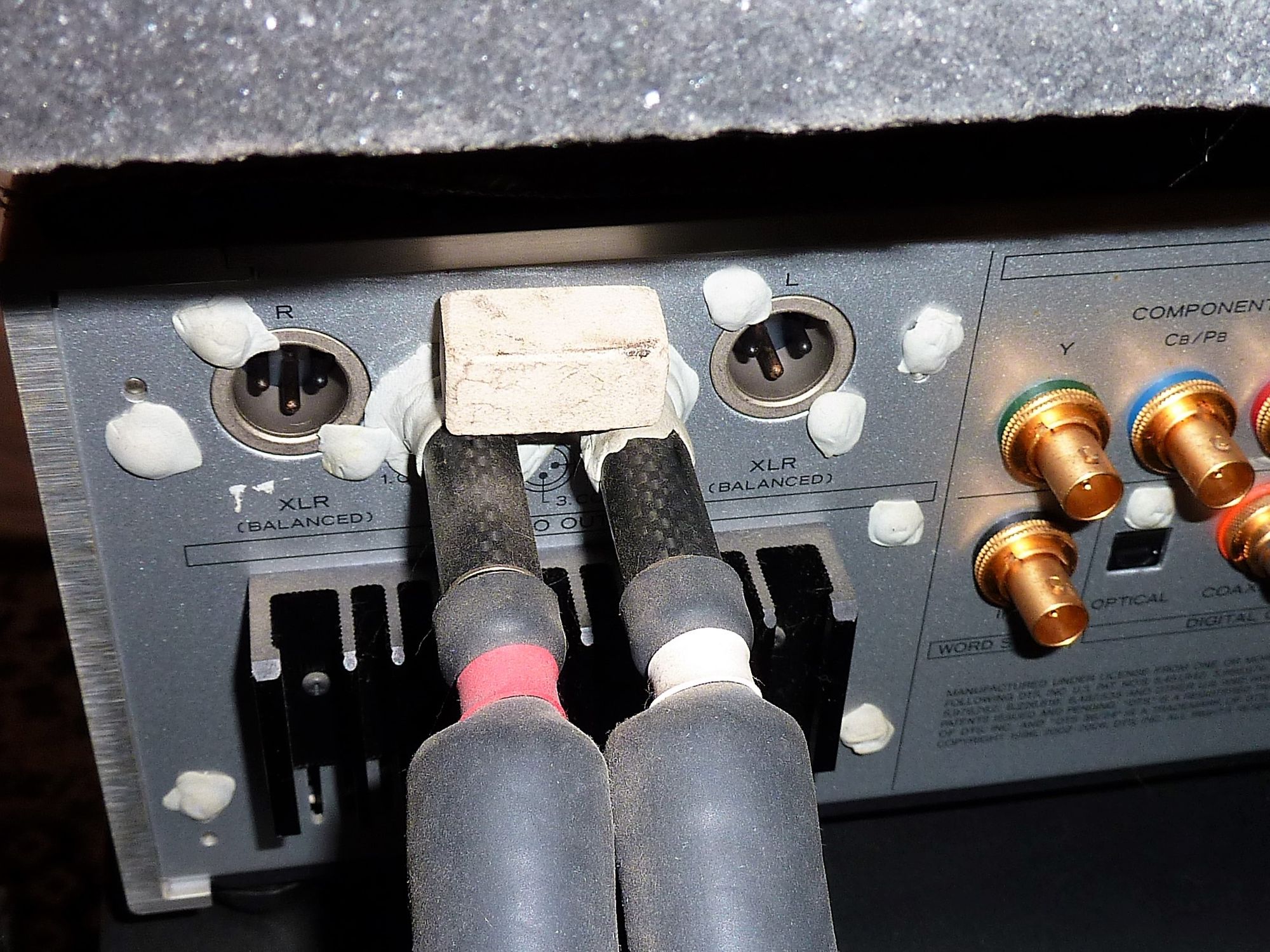 Un Mini Stone messo sopra i connettori di cavi RCA.