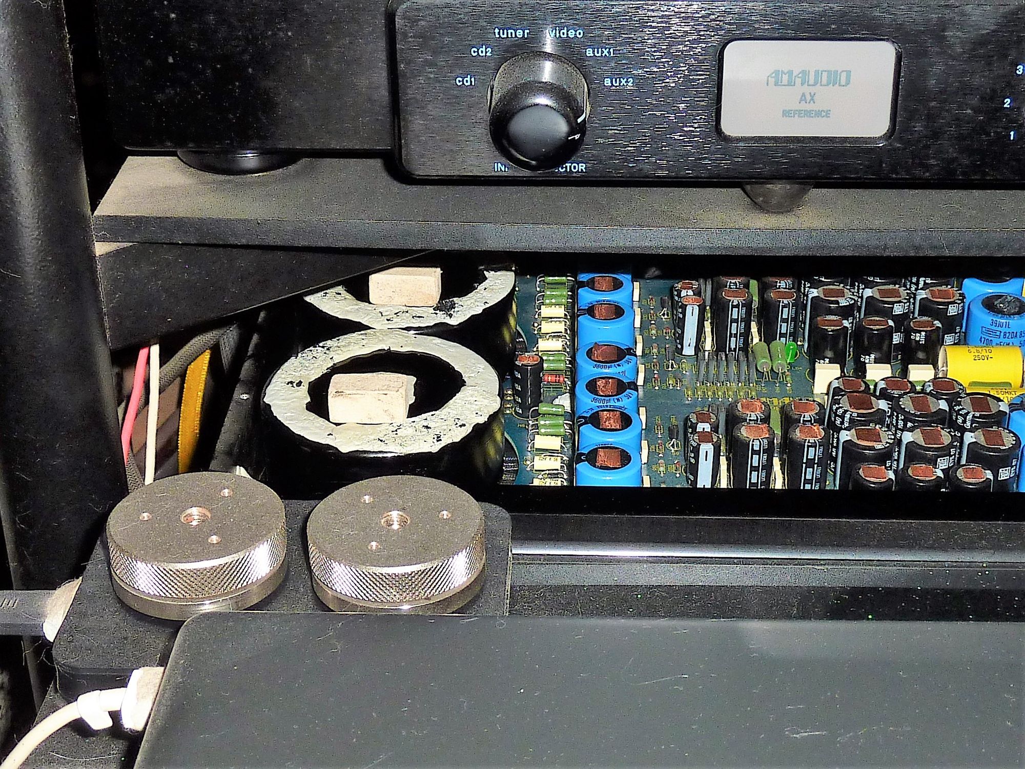 I Mini Stones Sublima posizionati sopra i trasformatori toroidali del preamplificatore.