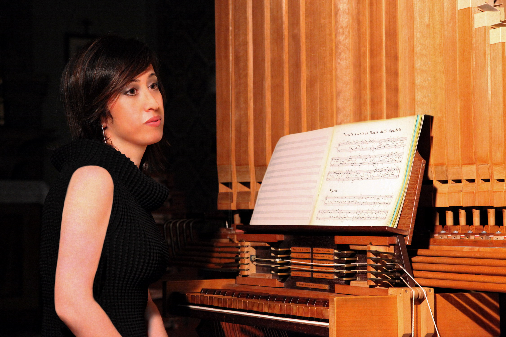 La pianista e organista Maria Grazia Amoruso all’organo costruito da Giorgio Questa.