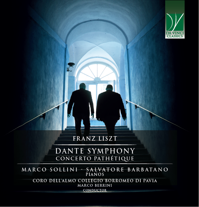 Se ci concentriamo, in tale sede, proprio sulla versione per due pianoforti, quella che venne pubblicata nel 1866 dal titolo Concerto pathétique (S.258/2) che introduce, per l’appunto, una più efficace disposizione del pensiero musicale, dovuta soprattutto al trattamento fornito dalla coppia di strumenti, è per il fatto che tale composizione è stata appena registrata, per la casa discografica Da Vinci Classics, dal duo formato da Marco Sollini e Salvatore Barbatano, unitamente a Eine Symphonie zu Dantes Divina Commedia S. 648, quest’ultima con la presenza del Coro Dell’Almo Collegio Borromeo di Pavia, diretto da Marco Berrini. Una scelta più che ovvia, visto che anche questa versione per due pianoforti e coro rappresenta una rielaborazione da quella originale per coro femminile e orchestra, composta a Weimar tra il 1855 e l’anno successivo (esiste anche una terza versione, la S. 672b per organo). È il caso di ricordare che il progetto originario orchestrale prevedeva una suddivisione dell’opera che seguiva l’articolazione delle tre cantiche della Divina Commedia: Inferno, Purgatorio e Paradiso, con l’ultima parte progettata con l’impiego di grandi complessi corali; ma quando Liszt sottopose il progetto a Wagner, quest’ultimo lo dissuase, sostenendo che «nessun esser umano sarebbe stato in grado di rendere in musica le gioie del Paradiso, il cui splendore in qualsiasi espressione artistica poteva soltanto esser contemplato con gli occhi dell’anima».