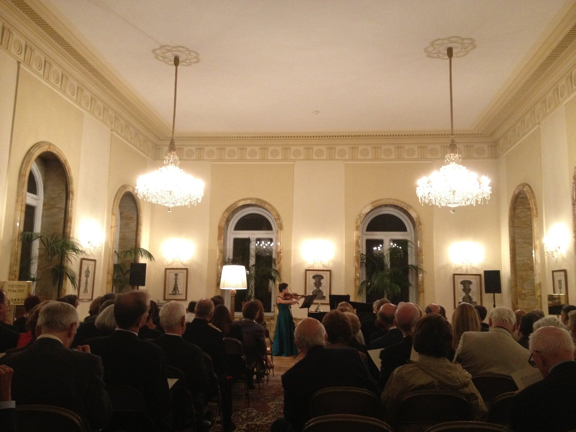 Madeleine Mitchell durante il concerto per il Queen’s Jubilee tenuto a Roma a Villa Wolkonsky, residenza dell’ambasciatore britannico.