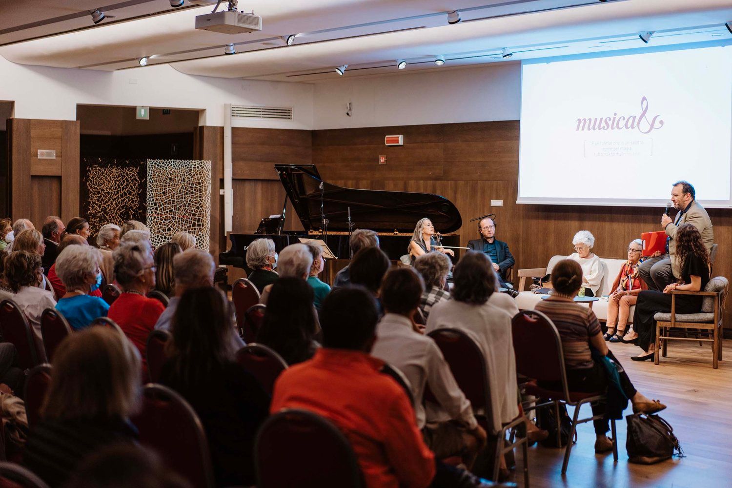 Da qui l’idea di Musica &, ossia di un format in cui un eccellente pianista (oltre che carissimo amico e mio complice in tutti gli aspetti di questo progetto) come Roberto Prosseda è interprete di un programma musicale che si dipana però attorno al racconto di argomenti diversi.