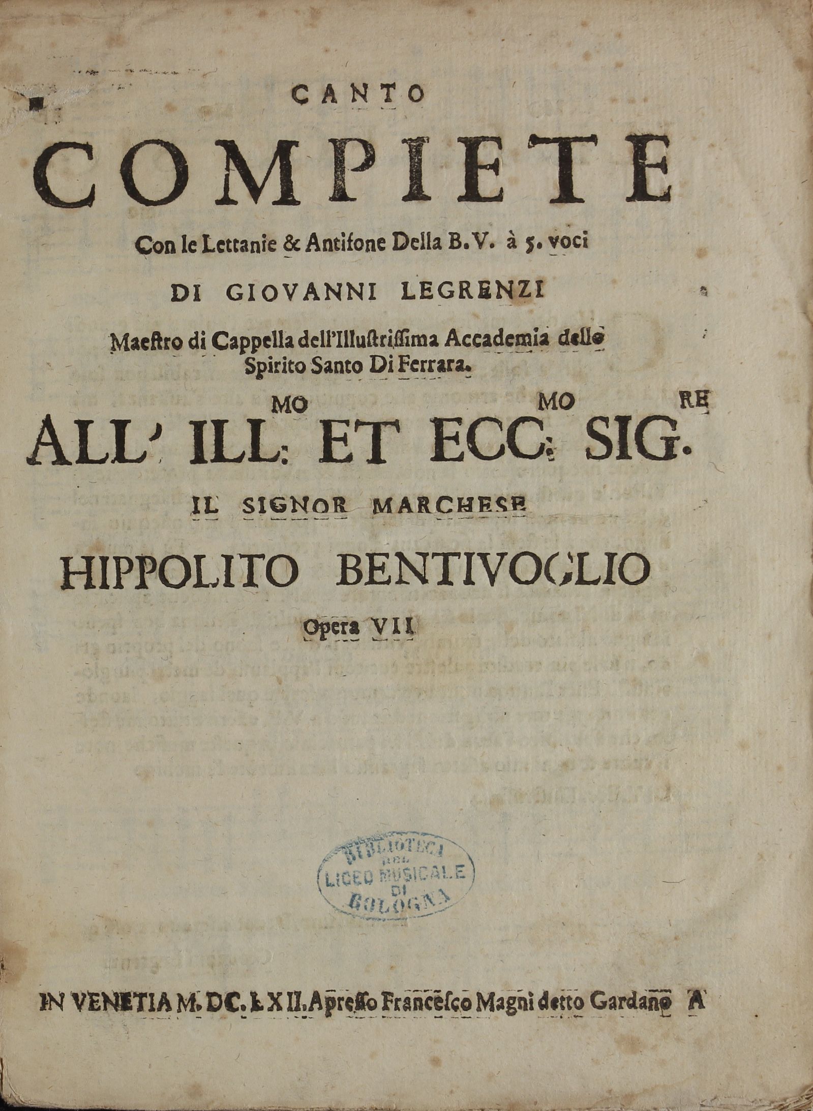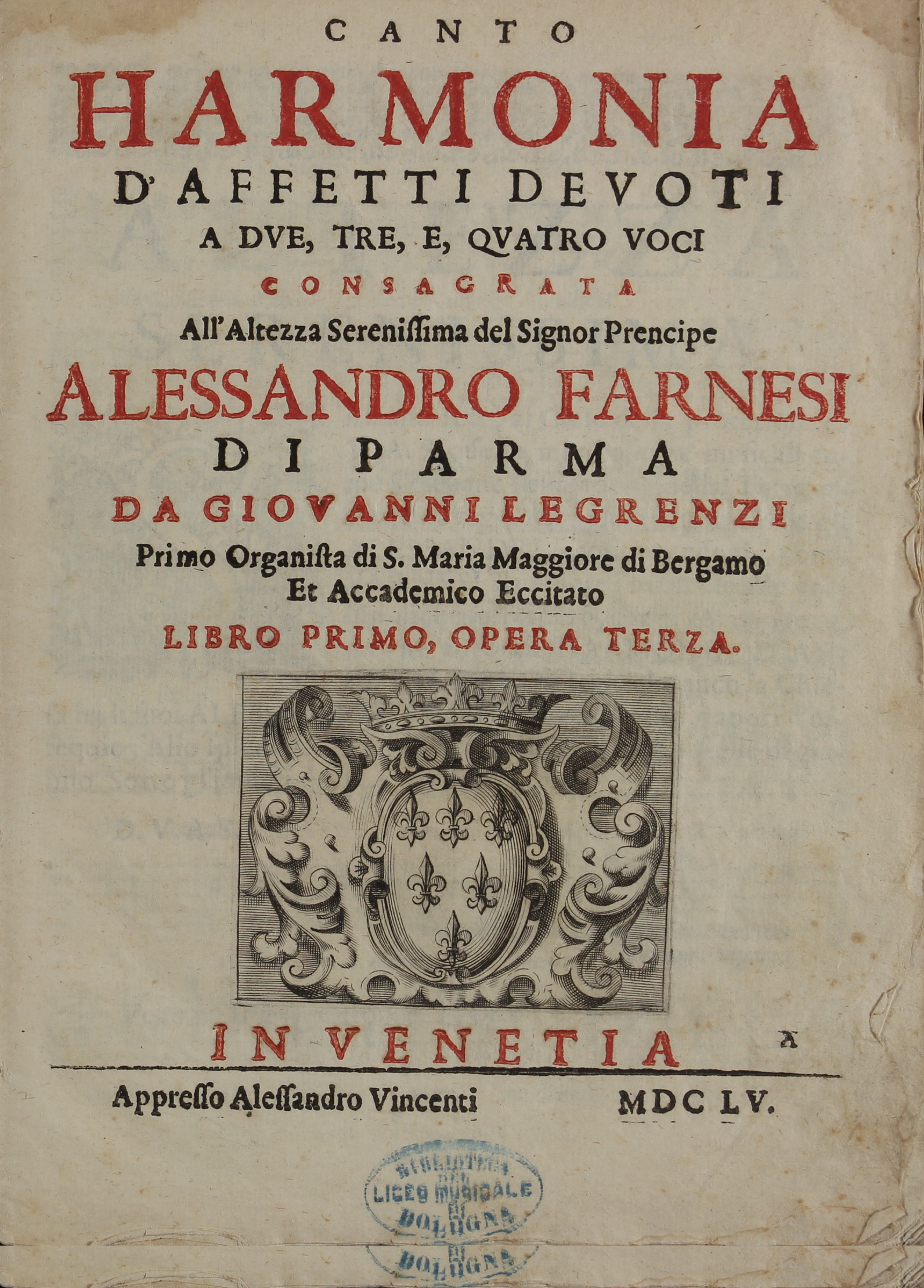 In questo contesto, la figura e l’opera del compositore clusonese Giovanni Legrenzi, uno dei massimi rappresentanti della musica italiana del secolo XVII, autore fra i più degni di occupare un posto di rilievo nella storia musicale di tutti i tempi, si distingue per la sua grandezza artistica sebbene ancor oggi non del tutto riconosciuta. Eppure, all’epoca nella quale visse e operò, egli fu considerato musicista di indiscusso valore, al punto da essere ammirato da Bach, da Händel, da Hasse e da tanti altri compositori del suo tempo. Legrenzi è infatti il musicista capace di riassumere in sé i tratti caratteristici di un’epoca (quella barocca) e di compendiarli tutti nella sua arte creativa. La sua musica è veramente rappresentativa dello stile barocco; si eleva a un apice di grande intensità espressiva attraverso un linguaggio musicale caratterizzato da un contenuto sottile e facile da comprendere, da una singolare raffinatezza melodica, da un erudito gusto armonico, da una impeccabile declamazione del testo. A parte un paio di messe, un Kyrie a sei voci, alcuni salmi, due Magnificat, un Dies irae a due cori e strumenti, mottetti vari e una Liturgia per il Natale, pervenuti manoscritti, l’intera produzione musicale vocale e strumentale di Giovanni Legrenzi (fatta esclusioni per gli oratori e i drammi per musica) è compendiata in una quindicina di volumi, affidati ai torchi degli stampatori veneziani Alessandro Vincenzi, Francesco Magni, Giuseppe Sala e dell’editore bolognese Giacomo Monti, in un periodo compreso fra il 1654 e il 1692.