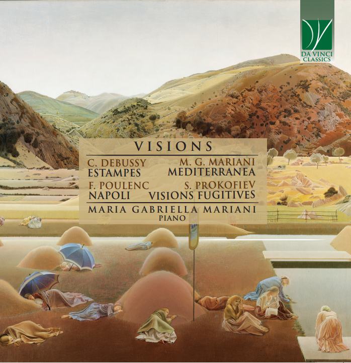 Quello presentato dalla pianista e compositrice napoletana Maria Gabriella Mariani per il suo ultimo lavoro discografico, Visions - Suites for Piano, pubblicato dalla Da Vinci Classics, è un esempio per comprendere come il pianoforte abbia saputo affrontare nel corso del Novecento da una parte la forma della Suite e dall'altra la proposizione e la resa dell'elemento “visivo”, oserei dire “pittorico”, dello sguardo dell'artista che fissa immagini, ricordi, sensazioni, traducendoli o, quantomeno, cercando di farlo, sulla tastiera dello strumento. Da qui, la scelta di pagine come le tre inevitabili, tenuto conto del tipo di progetto, Estampes di Claude Debussy, la poco eseguita Suite Napoli di Francis Poulenc, le celeberrime Visions fugitives op. 22 di Sergej Prokof'ev, unitamente a una composizione della stessa Maria Gabriella Mariani, la Suite in tre parti Mediterranea, da lei scritta tra il 2009 e il 2019.