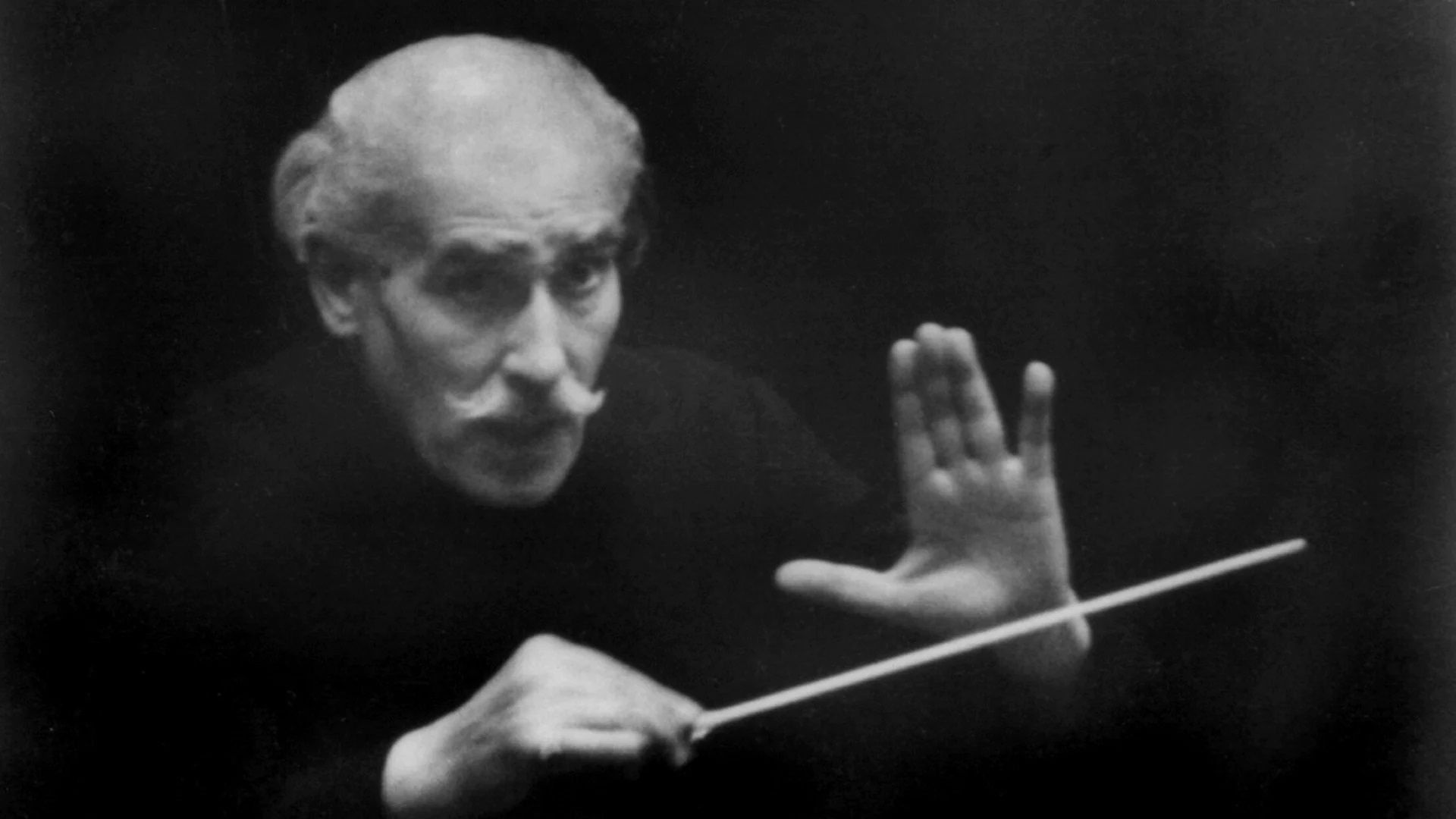 Arturo Toscanini impegnato in uno dei suoi ultimi concerti americani.