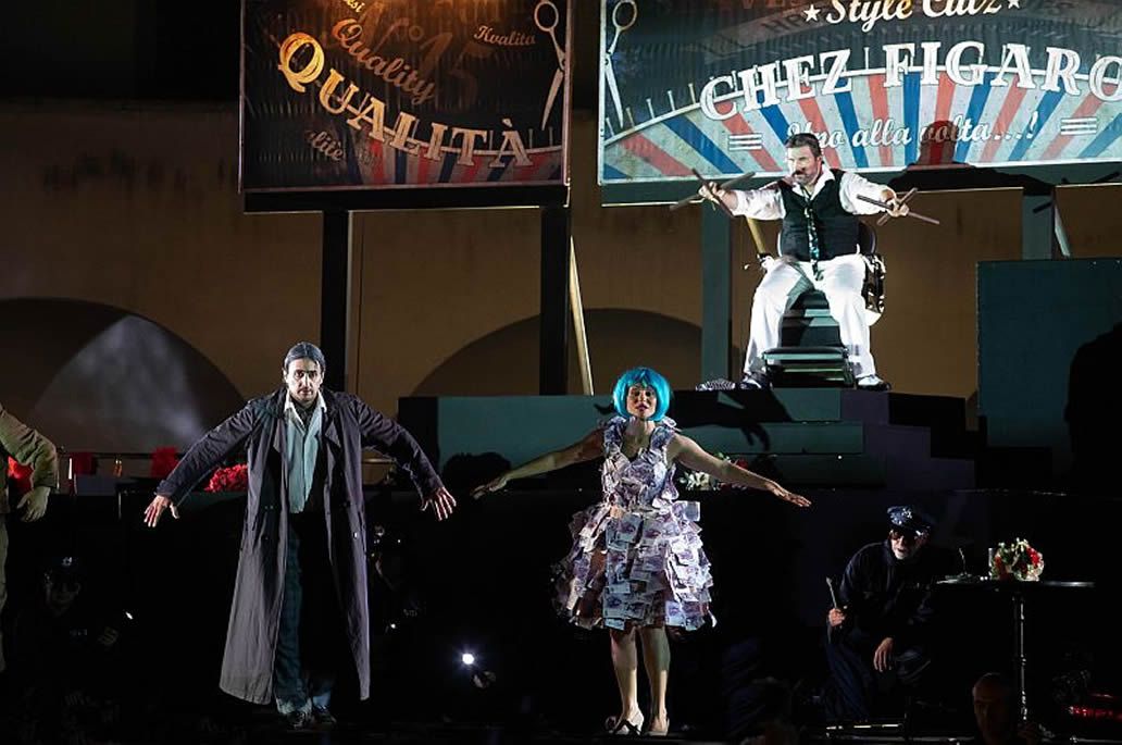 Una scena da Il barbiere di Siviglia di Rossini, con la regia di Yamal Das Irmich andato in scena al Castello dei Carraresi a Padova.