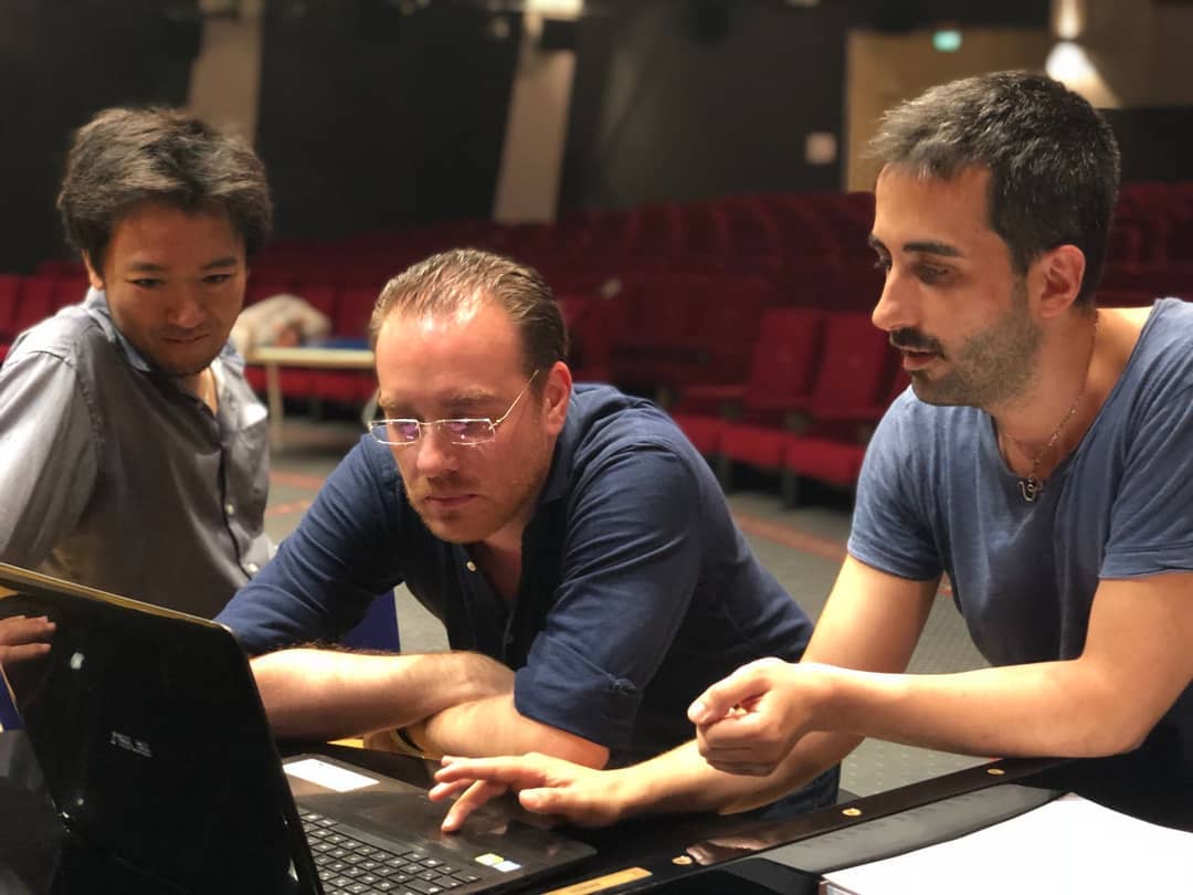 Yamal Das Irmich con il tenore Francesco Meli (al centro) durante la preparazione della Carmen di Bizet all’Arena di Verona.